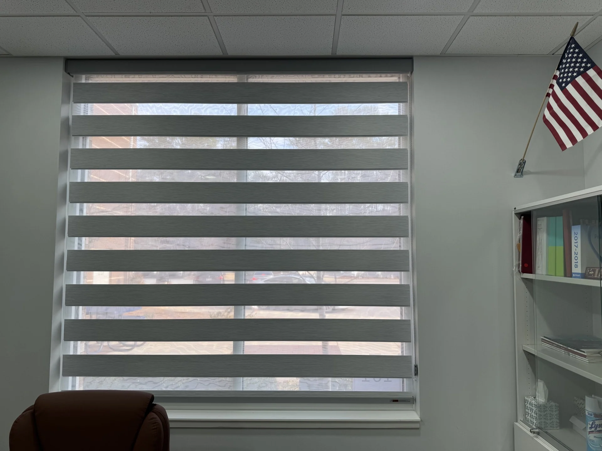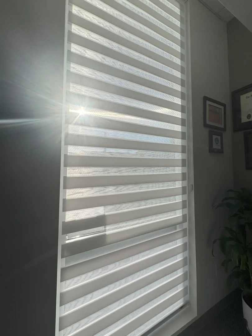 Remote-controlled, modern and efficient motorized curtain solution for offices.