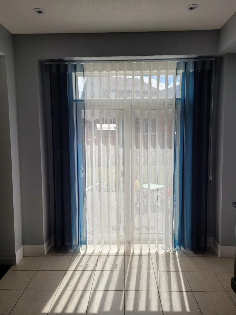 Vertical shades feature long, vertical fabric or vinyl slats that rotate to control light and privacy. Ideal for large windows and sliding glass doors, they offer a sleek and functional design. These shades are available in a variety of materials, colors, and textures to match any décor. Their smooth gliding mechanism allows for effortless operation and easy adjustment. Durable and low-maintenance, vertical shades provide an elegant solution for wide openings.